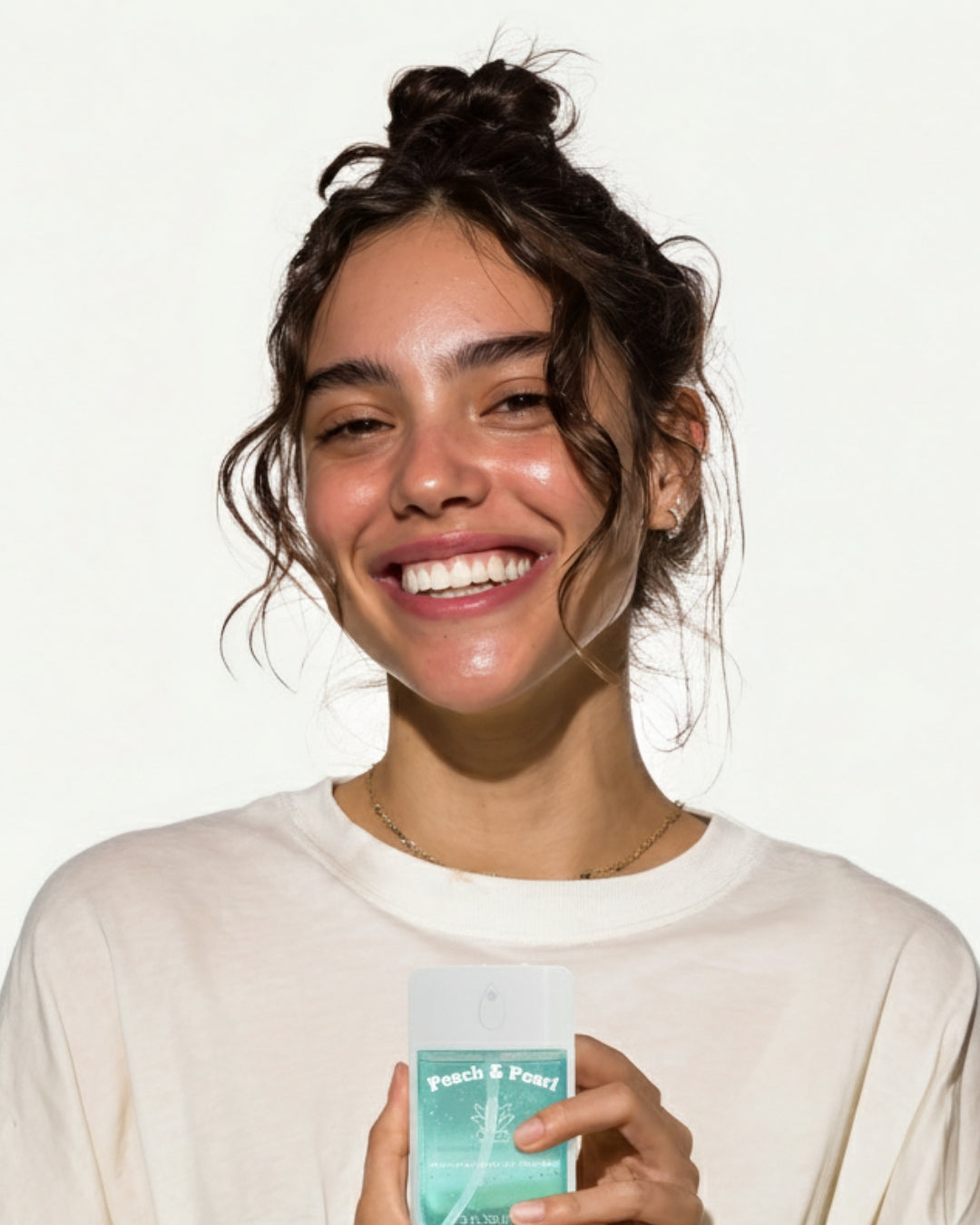 Peach & Pearl est née de Léna, étudiante de biologie et de chimie, qui en avait assez des sprays d’hygiène agressifs, collants et qui sentaient l’hôpital.